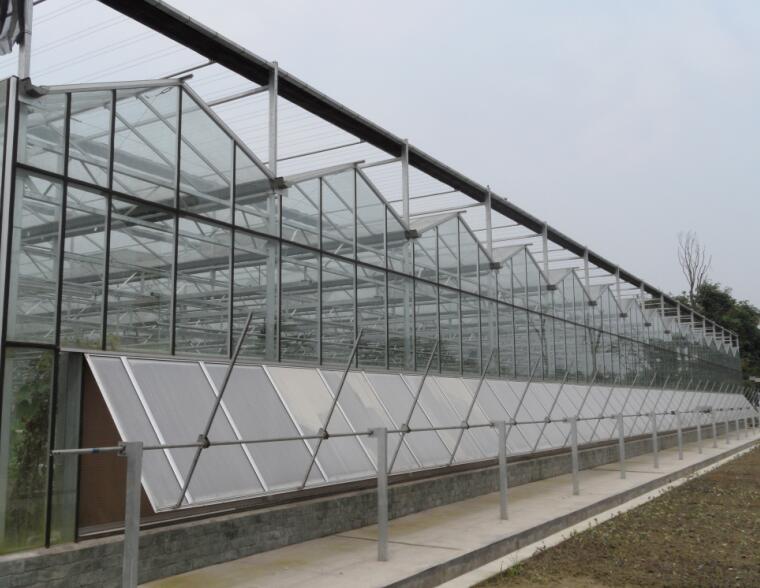 覆蓋材料為國產(chǎn)4mm或5mm厚浮法玻璃,其透光率〉90%。溫室頂部及四周為專用鋁型材。側(cè)面和端面也可采用單層、雙層或中空玻璃為覆蓋材料