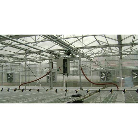 PG60ST型雙軌自走式噴灌機(jī)是我公司自行研制開(kāi)發(fā)的噴灌產(chǎn)品,該機(jī)型是美國(guó)進(jìn)口機(jī)型的升級(jí)換代版本,它集多年來(lái)設(shè)計(jì)經(jīng)驗(yàn)之積累,和廣大用戶的建議而成。它繼承了原來(lái)穩(wěn)定可靠的性能優(yōu)點(diǎn),又增加了新的功能。為使用更方便增加了無(wú)線遙控操作,使操作更方便。本機(jī)型的操作終端,由車上控制器和無(wú)線遙控器兩部分組成。車上操作盒上設(shè)置有正向運(yùn)行、反向運(yùn)行、停車、連續(xù)調(diào)速、連續(xù)噴灌、關(guān)左部水、關(guān)右部水。無(wú)線遙控器是車上操作盒的部分備份,無(wú)線遙控器有正向運(yùn)行、反向運(yùn)行、停車、開(kāi)水、關(guān)水。無(wú)線遙控器可減輕操作勞動(dòng)強(qiáng)度,遙控距離達(dá)100米??刂菩盘?hào)傳感器,繼承了國(guó)外用磁電傳感的優(yōu)良傳統(tǒng)??杀WC信號(hào)傳感器具有超長(zhǎng)的使用壽命,久用無(wú)損。電機(jī)動(dòng)力驅(qū)動(dòng)部分,用先進(jìn)的工業(yè)變頻器承擔(dān)??刂扑俣确€(wěn)定,力矩平穩(wěn)。為了使系統(tǒng)便于使用,系統(tǒng)的電源采用了交流220V市電。控制系統(tǒng)采用正向、反向運(yùn)行或往返運(yùn)行,可以單獨(dú)或連續(xù)噴水,可以隨時(shí)遙控停車。本系統(tǒng)主要針對(duì)國(guó)內(nèi)用戶使用,性價(jià)比優(yōu)于進(jìn)口產(chǎn)品,可以節(jié)約勞動(dòng)成本,充分提高生產(chǎn)效率。