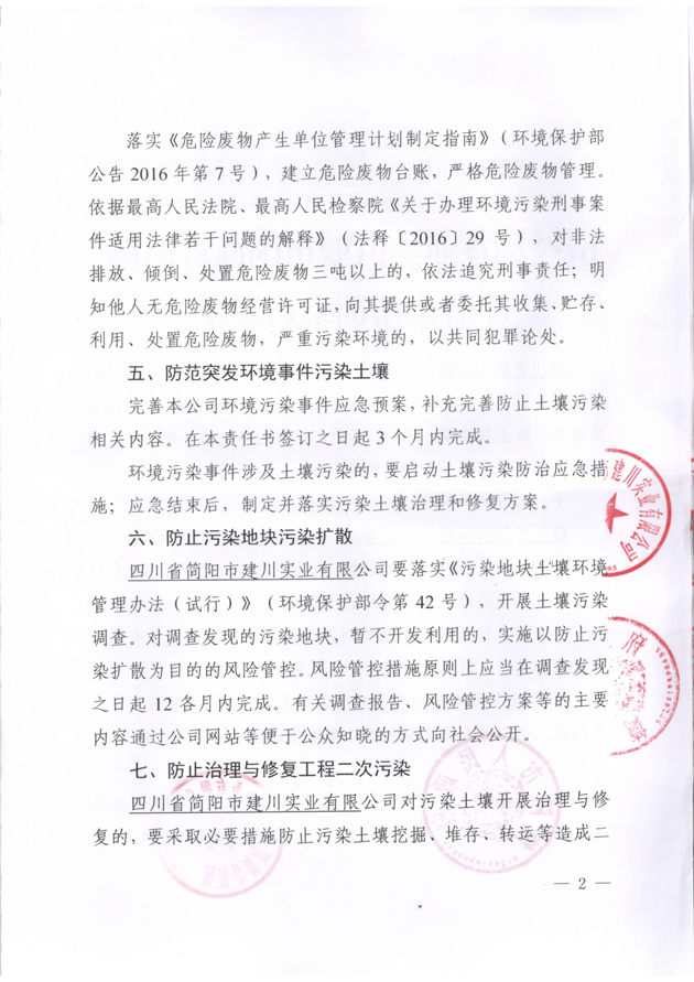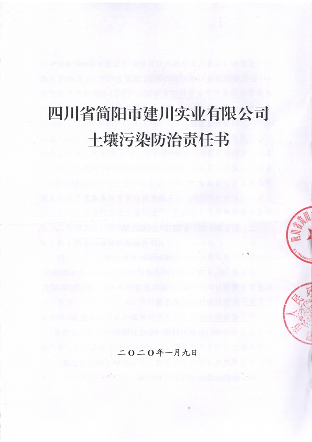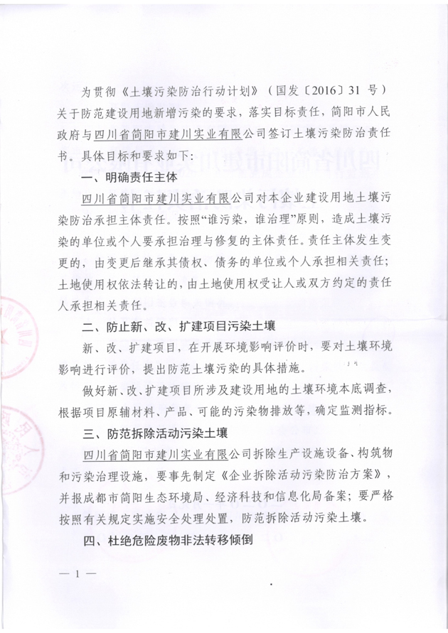四川省簡(jiǎn)陽(yáng)市建川實(shí)業(yè)有限公司土壤污染防治責(zé)任書