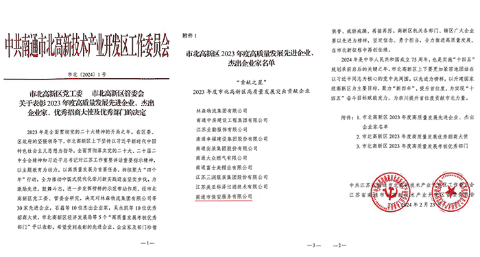 喜報(bào)——南通保安公司榮獲市北高新區(qū)“‘貢獻(xiàn)之星’——2023年度高質(zhì)量發(fā)展突出貢獻(xiàn)企業(yè)”稱(chēng)號(hào)